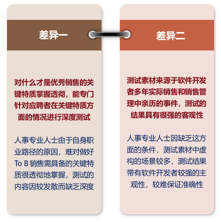 我们这款软件的研发者,都来自于有20年以上To B销售或销售管理经验的人士,精准度高,与人事专业人士主导开发的软件,有两大明显差异