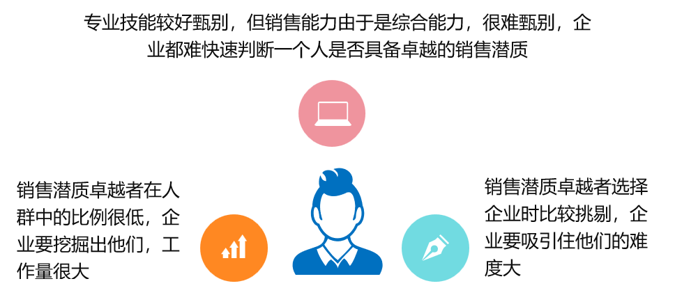 要挖掘到销售潜质卓越者,企业的人事既要从各种人才渠道去搜寻大量的求职者,又要进行大量的甄别工作,而人事人员由于普遍缺乏深厚销售管理背景,对他们的甄别能力其实是较弱的,这几乎是他们完成不了的工作,但这一步做不好,企业就只能从矮子里面选高子,以至于绝大部分企业都是平庸销售人员的比例高居不下